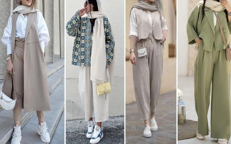 - ترکیب یک تیشرت کرم یا بژ با کتونی سفید، ظاهری نرم و متعادل میسازد.