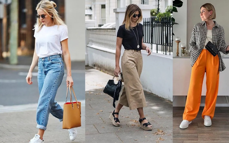 همچنین شلوارهای جین یا کتان را می توانید به راحتی با سایر لباس های بالاتنه ست نمایید. در این استایل شلوارهای جین با برشهای مختلف و شلوارهای کتان راحت و مناسب، بسیار پرطرفدار هستند. کفشهای ورزشی، صندلها یا کفشهای راحتی میتوانند انتخابهای خوبی باشند.