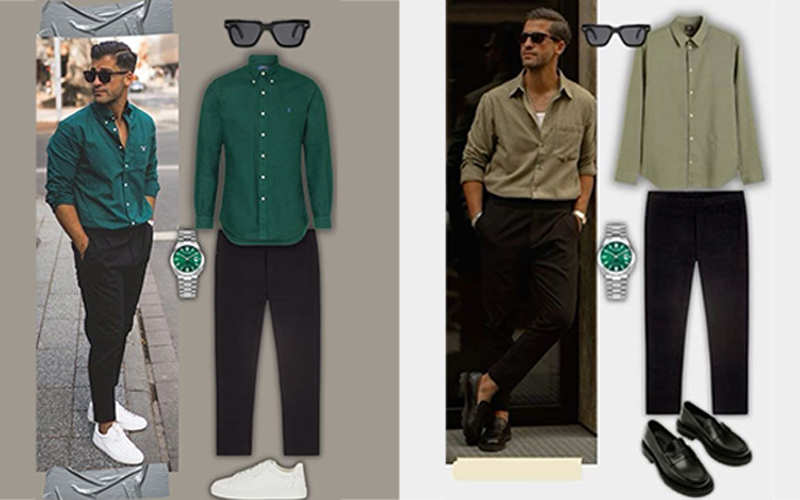 2- استایل نیمهرسمی : این استایل ترکیبی از عناصر رسمی و غیررسمی است. معمولاً شامل شلوارهای جین تیره یا شلوار کتان با پیراهن و کفشهای رسمیتر میشود.