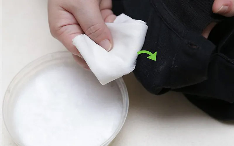 - یک قاشق غذاخوری جوش شیرین برای هر لباس در آب سرد یا ولرم اضافه کنید.