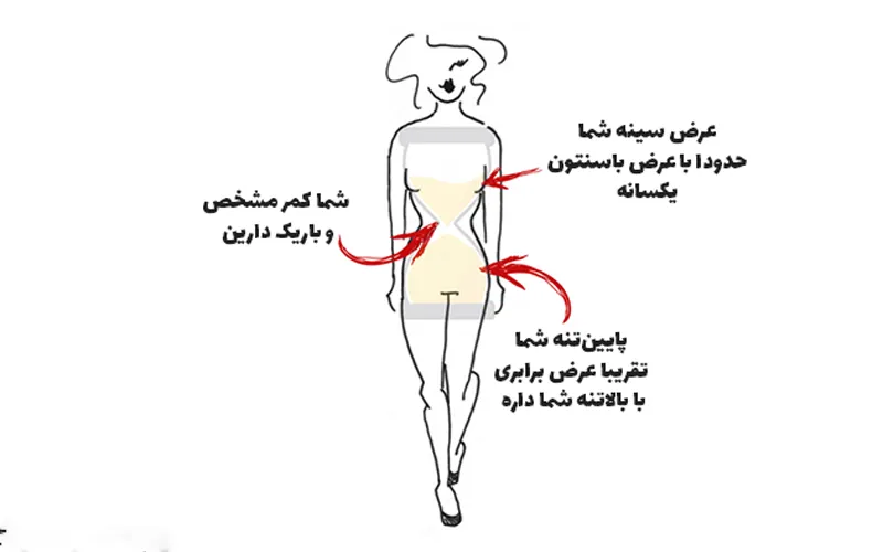 فرم بدن ساعت شنی یکی از جذابترین و ایدهآلترین فرمهای بدن خانمها است. در این حالت، سینه و باسن شما تقریبا هماندازه و برجسته هستند، در حالی که دور کمر باریک و مشخص است. این تناسب طبیعی باعث میشود بدن شما فرم زیبایی داشته باشد و لباسها به راحتی روی آن جلوه کنند. نکته مهم برای این فرم بدن، برجسته کردن کمر و حفظ تعادل بین بالاتنه و پایینتنه است.