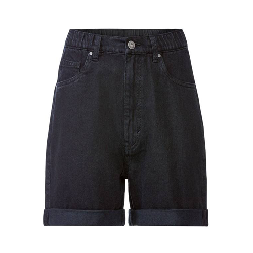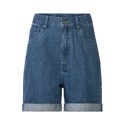 شورتک جین مام‌فیت زنانه — ترکیب استایل و راحتی تابستانی تولیدشده با حمایت از کشاورزی پایدار پنبه در آفریقا پنبه خالص با لطافت و تهویه عالی برای استفاده روزمره طراحی ۵ جیب کلاسیک با لبه رول‌شده و جزئیات ظریف زیپ بادوام YKK و کشسانی ملایم با الاستین creora®