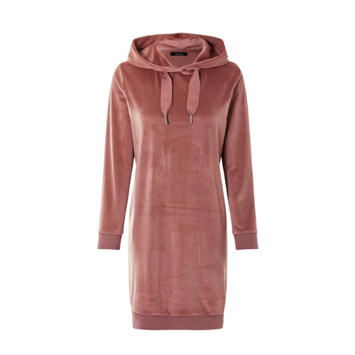 هودی بلند مخملی زنانه اسمارا — گرما، لطافت و سبک شیک ساخته‌شده از پلی‌استر بازیافتی با تولید مسئولانه اجتماعی ترکیب پشم گوسفند نرم و LYCRA® برای راحتی و کشسانی بیشتر طراحی گشاد با شانه افتاده و هود بنددار برای روزهای سرد رنگ‌های جذاب کرم و صورتی + سجاف کشباف برای دوام بالا