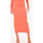 • دامن میدکسی بافتنی رنگ آجری با فیت فرم‌پسند