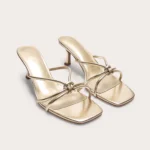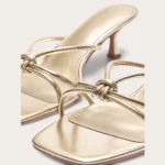 سندل پاشنه‌دار طلایی با بند گره‌خورده