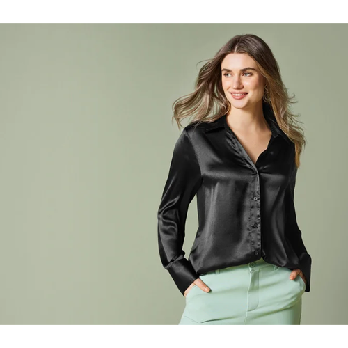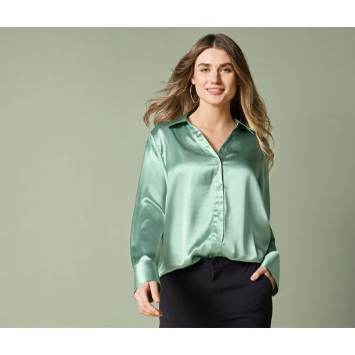 • شومیز ساتن مات زنانه اسمارا با یقه کنت