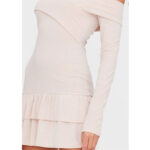 • پیراهن مینی بافت rib با یقه Bardot