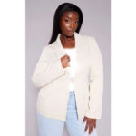 • کت کرمی سایز پلاس با برش‌ Tailored