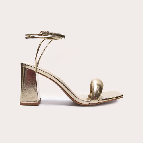 کفش پاشنه‌دار طلایی با طراحی بافت‌دار