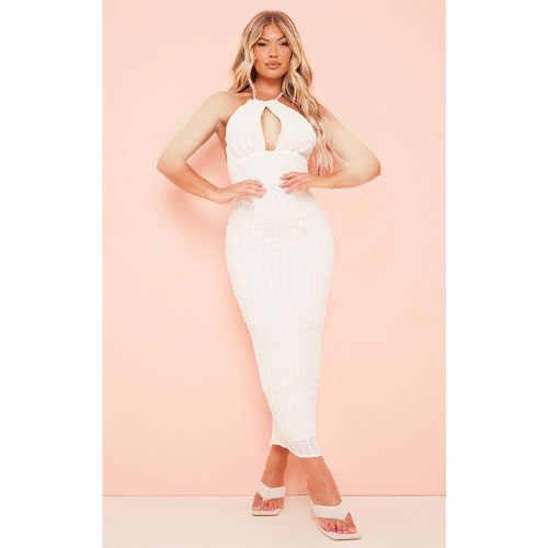 • لباس ماکسی با یقه Bardot و بافت ریب