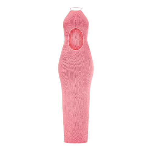 • لباس ماکسی بافتنی دو‌رنگ صورتی