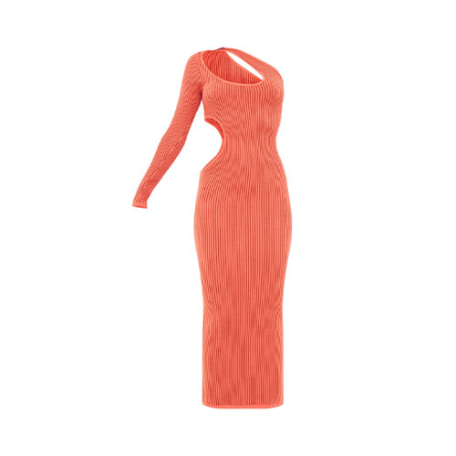 • پیراهن ماکسی تک‌شانه رنگ گلبهی