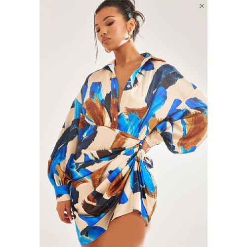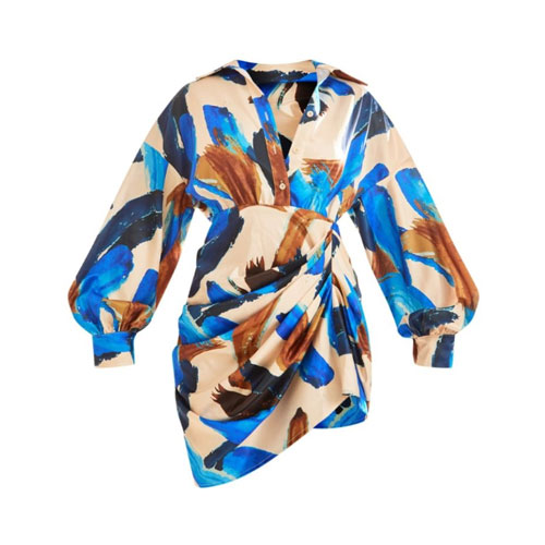 • پیراهن ساتن چاپ چند‌رنگ با آستین‌های بزرگ