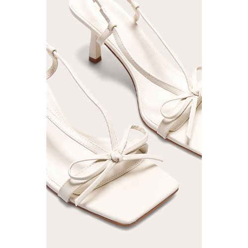 • صندل پاشنه‌دار کرم با نوک مربعی و طراحی مینیمال