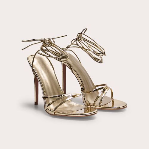سندل پاشنه‌دار طلایی با طراحی بند‌دار